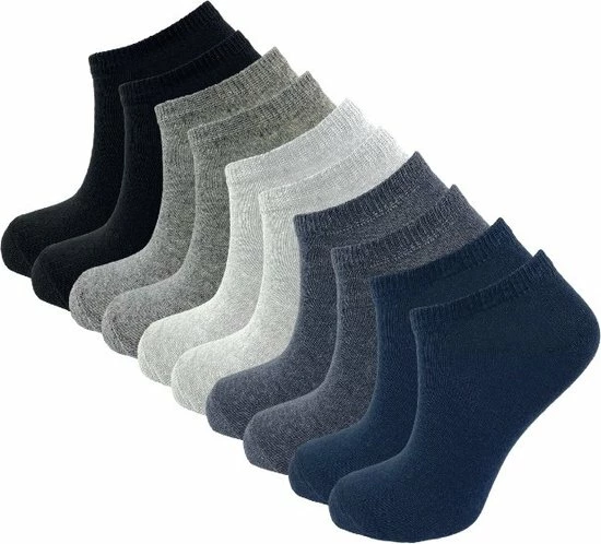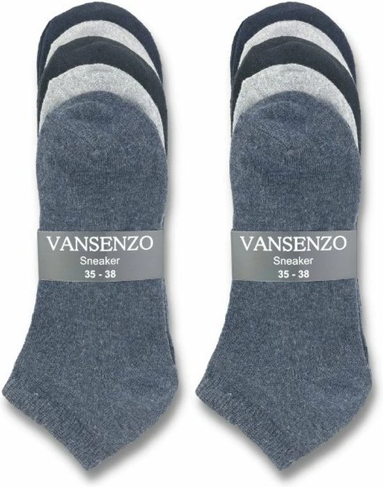Set van 10 paar basic dames sneakersokken van het merk VANSENZO in de kleuren zwart, grijs gemĂȘleerd, lichtgrijs gemĂȘleerd, jeans en marineblauw. Deze fijne dunne sneakersokken zijn een ideale basic om te dragen in de zomer. De sokken zijn gemaakt van een katoenmix die zacht en comfortabel aanvoelt. De sneakersokken zijn ademend, anti-transpirerend en hebben een stevige teennaad. Deze basic sneakersokken zijn verkrijgbaar in maat 35-38 en 39-42. De dames sneakersokken worden geleverd in een voordeelpak van 10 paar.
