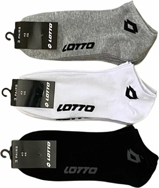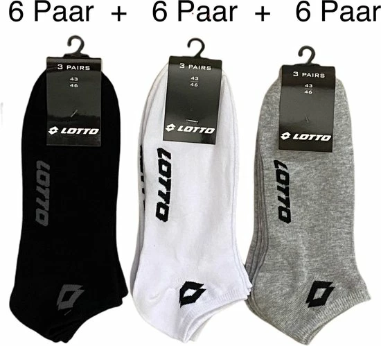 6+6+6 paar LOTTO Sneaker sokken. Wit-Zwart-Grijs maat 39-42 Unisex BULK VOORDEEL !!