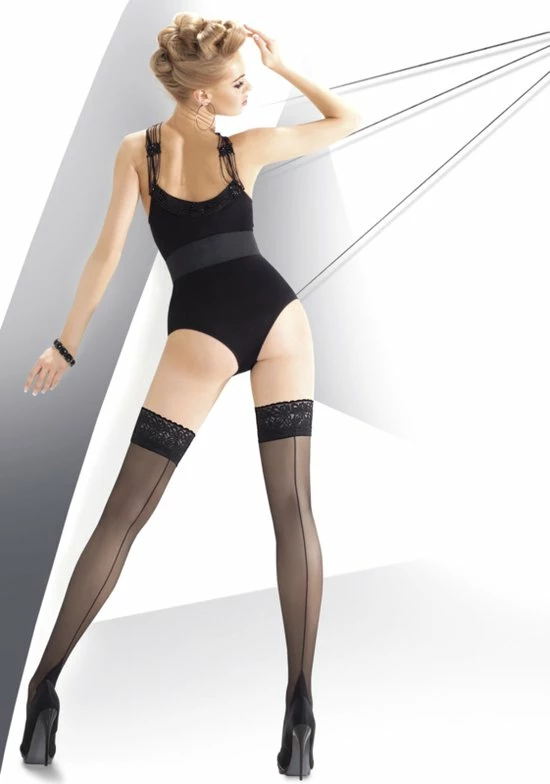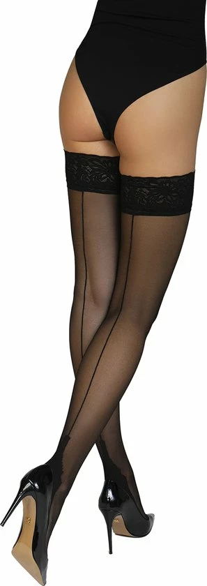 Calze Exclusieve 20DEN Luxe kousen met zelfophoudende rand en een fijne naad aan de achterzijde. Door de siliconen rand aan de bovenzijde zakt hij niet af. Zonder jarretel te dragen. Voel je sexy en zelfverzekerd!