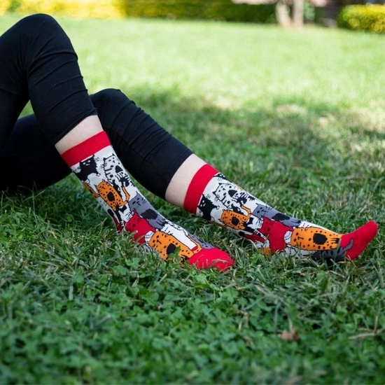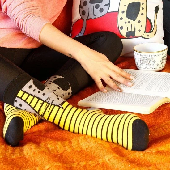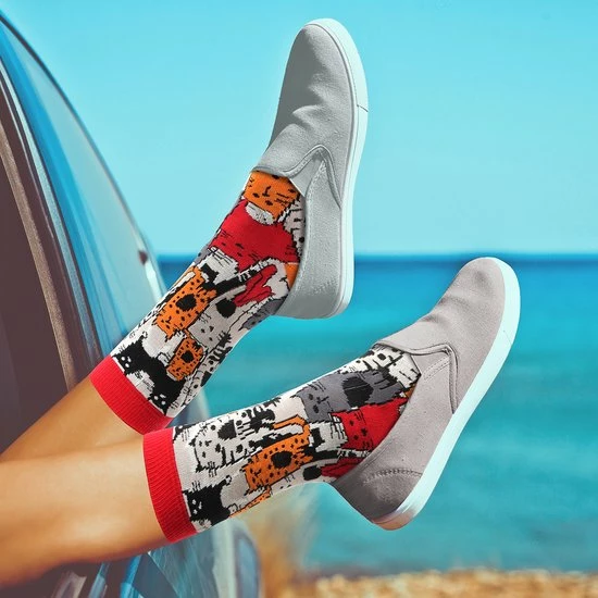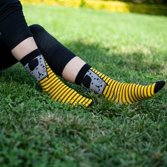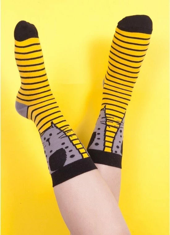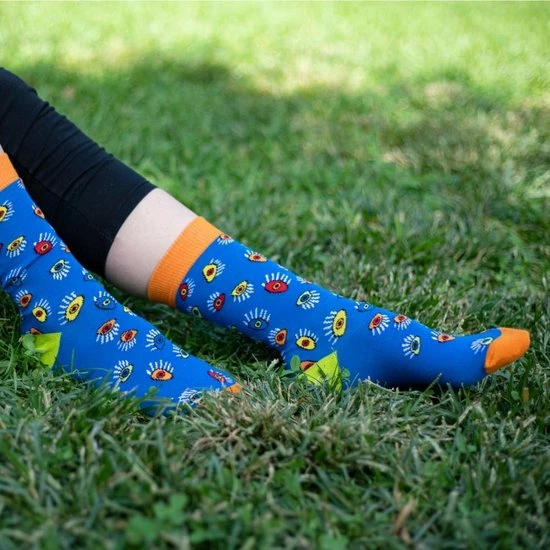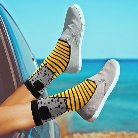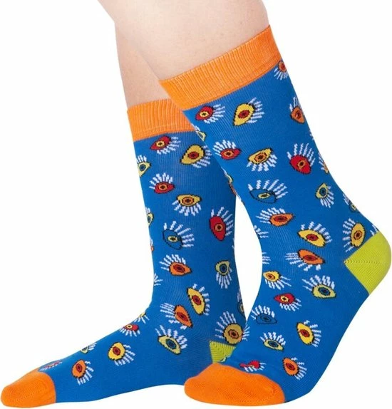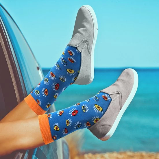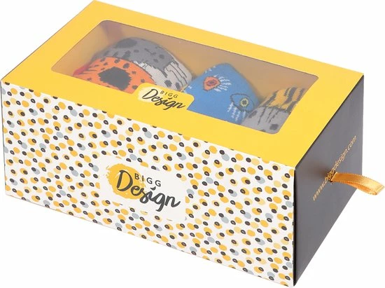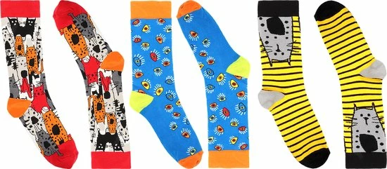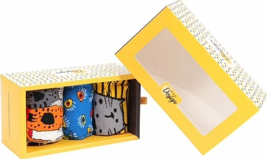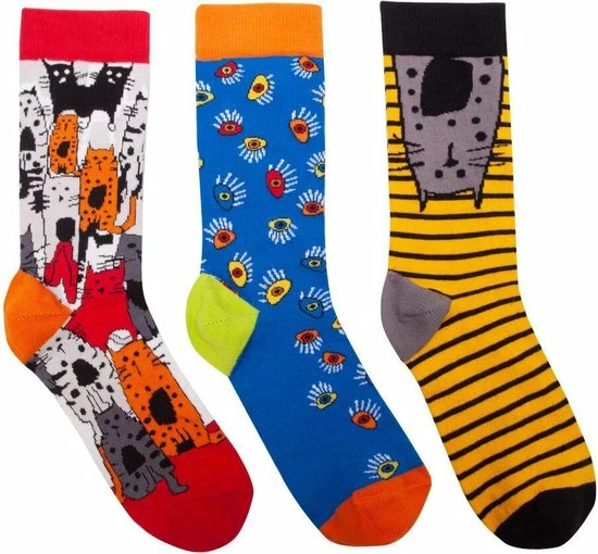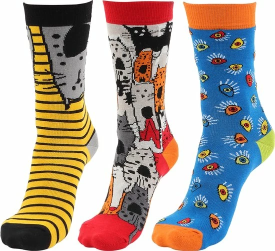 Goede sokken beschermen de voeten niet alleen tegen kou, vocht, en zweet, maar moeten natuurlijk ook lekker zitten en stijlvol zijn! Met de sokken van BiggDesign zit jij in ieder geval goed. De sokken hebben naast een zachte en comfortabele textuur, drie verschillende kleurrijke patronen van katten en ogen. De Biggdesign sokken zijn geschikt voor maat 36 t/m 40 en gemaakt van 77% katoen, 20% polyamide en 3% elastaan.