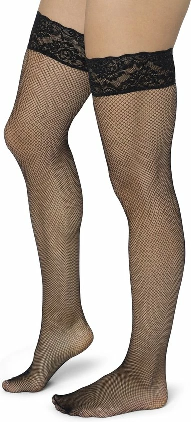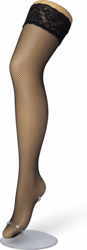 Mooie fijne FISHNET Hold up met brede band voorzien van hoge kwaliteit siliconen randen. 78% polyamide, 22% elastaneTips voor het dragen en wassen van hold-upsHold up panty’s zijn zelf-ophoudende panty’s zonder broekje. Deze hebben aan de bovenkant een elastische band waarin siliconen randen zijn verwerkt , deze randen plakken op de bovenbenen Door deze siliconenrand blijven de kousen aan het bovenbenen ‘plakken’. * Trek je hold-up goed, sla de band terug, de siliconen randen zijn nu zichtbaar.Ga met een in warm water gedompeld washandje over de siliconen randen heen, Je maakt ze nu schoon en warm, hierdoor wordt de siliconen week en blijft de hold up perfec aan het been ‘plakken’. Bij dragen zal door de lichaamstemperatuur de hold up blijven ‘plakken’ . * Gebruik GEEN bodylotion, (bad) olie, of creme wanneer je hold-ups gaat dragen. Wanneer je dit wel gebruikt maakt dit de siliconen rand van de holdup glad en ze zullen hierdoor van het been afzakken. * Was je hold ups in lauw warm of koud water, anders verliest de siliconen band kracht. * Gebruik van wasverzachter wordt ook ontraden, dit kan het elastane beschadigen en de hold up zal zijn rek verliezen.