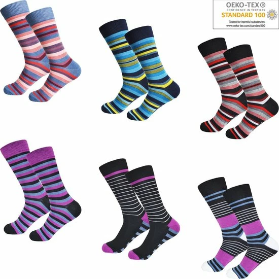 Dames sokken van Gianvaglia met fijne strepen in een voordelige 12-pack. De stof is van duurzame kwaliteit en voelt comfortabel aan. Kleurrijk met stippen.