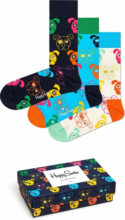 | Lijn | Happy, Socks, 0300, 3-Pack, Dog, Gift, Set |