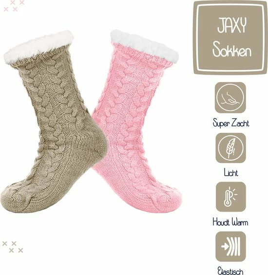 Op zoek naar de meest stijlvolle en comfortabele huissokken? Zoek dan niet verder. Deze fleece gevoerde winter sokken van JAXY bevatten een zacht wolkachtig donzig materiaal die ervoor zorgen dat je voeten en tenen warm blijven op koude momenten. De zachte fleecevoering is super zacht en houden niet alleen je voeten warm, maar laten je voeten ook ademen en voorkomen daarmee zweetvoeten.