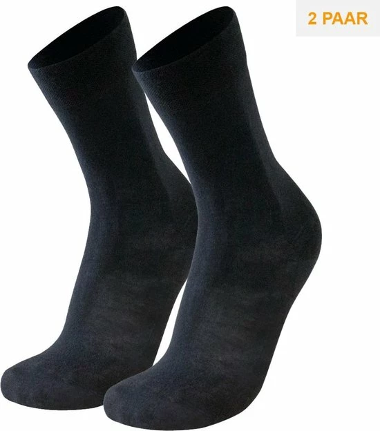 2 Paar dunne Merino Sokken. Dankzij de Core-Spun technologie blijven je voeten in deze sokken heerlijk droog en fris. Dezesokken zijn ultra-elastisch, superzacht en hebben een extra versterkte hiel en teen. Deze sokken zijn ideaal om iedere dag te dragen. De sokken hebben dezelfde dikte als katoenen sokken en zijn van nature antibacterieel waardoor je langer frisse en fitte voeten houdt. De sokken zijn wasbaar in de wasmachine maar mogen absoluut niet in de droger.