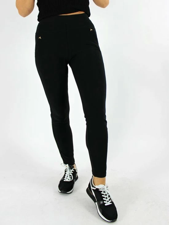 Deze tregging is zeer geschikt om zowel casual als chique te dragen. Door de steekzakken valt het model als een pantalon. De dikkere stretch stof samen met de ‘’gouden’’ details op de zakken zorgen voor een chique uitstraling. Maar in werkelijkheid zit het als een zeer comfortabele legging.