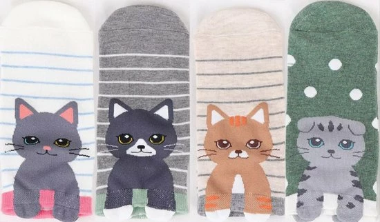 Leuke set van 4 paar enkelsokken voor die kattenliefhebber!