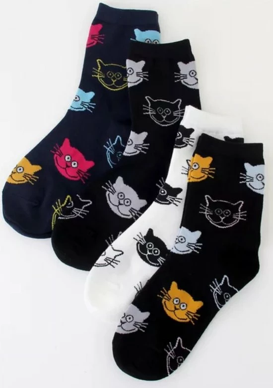 Leuke set met 4 paar comfortabele sokken voor de echte kattenliefhebber!