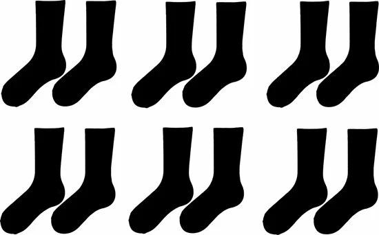 Je ontvangt 6 paar sokken zoals afgebeeld.