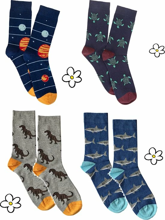 Ze zijn er niet alleen voor kinderen, ook voor volwassene. Warme sokken waar je vrolijk van wordt! Super gaaf met flamingo, t-rex en haai print. Deze sokken zijn van een hoge kwaliteit, de print is ingeweven in de stof en blijft daardoor mooi. Verkrijgbaar in maat 39-42