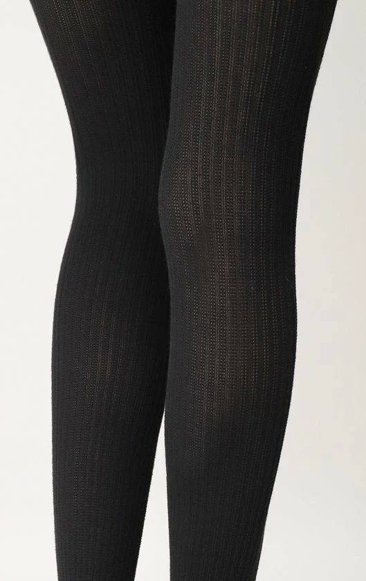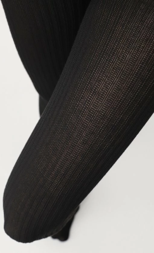 Eco panty gemaakt van zacht gerecycled polyester en viscose. Deze gebreide panty heeft een verticaal streep patroon. Deze duurzame panty is speciaal ontworpen om in sneakers te dragen. De voetzool en hak zijn extra verstevigd.