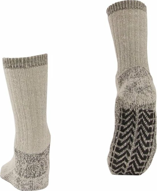 Vergeet je pantoffels, deze heerlijke sokken met antislip laag zijn de ideale sloffen voor in huis. Ze zijn warm, kriebelen niet en je glijdt niet uit op de trap of een gladde ondergrond. Wij hebben ons laten vertellen dat deze sokken zelfs zeer geschikt zijn voor yoga. Warme sokken met antislip. Dit zijn de ideale sloffen; zacht, warm, met een antislip laag én ze kunnen gewoon in de wasmachine. Eigenlijk is dit dezelfde sok als de Merino wollen wintersok maar dan met een antislip laag (abs) op de zool van de sokken.