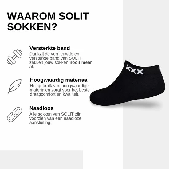 Door de versterkte band van SOLIT socks zakken jouw sokken nooit meer af. Zowel tijdens het sporten als alledaagse activiteiten ondersteunen de enkelsokken van SOLIT jouw voeten. Het hoogwaardige katoen zorgt voor een comfortabele pasvorm. De lage pasvorm en het stijlvolle design zorgen ervoor dat deze sokken passen bij elke outfit.